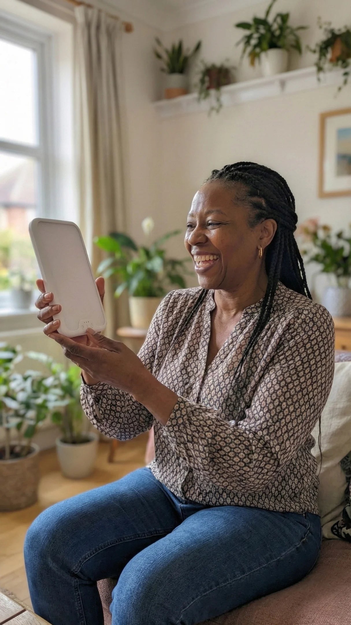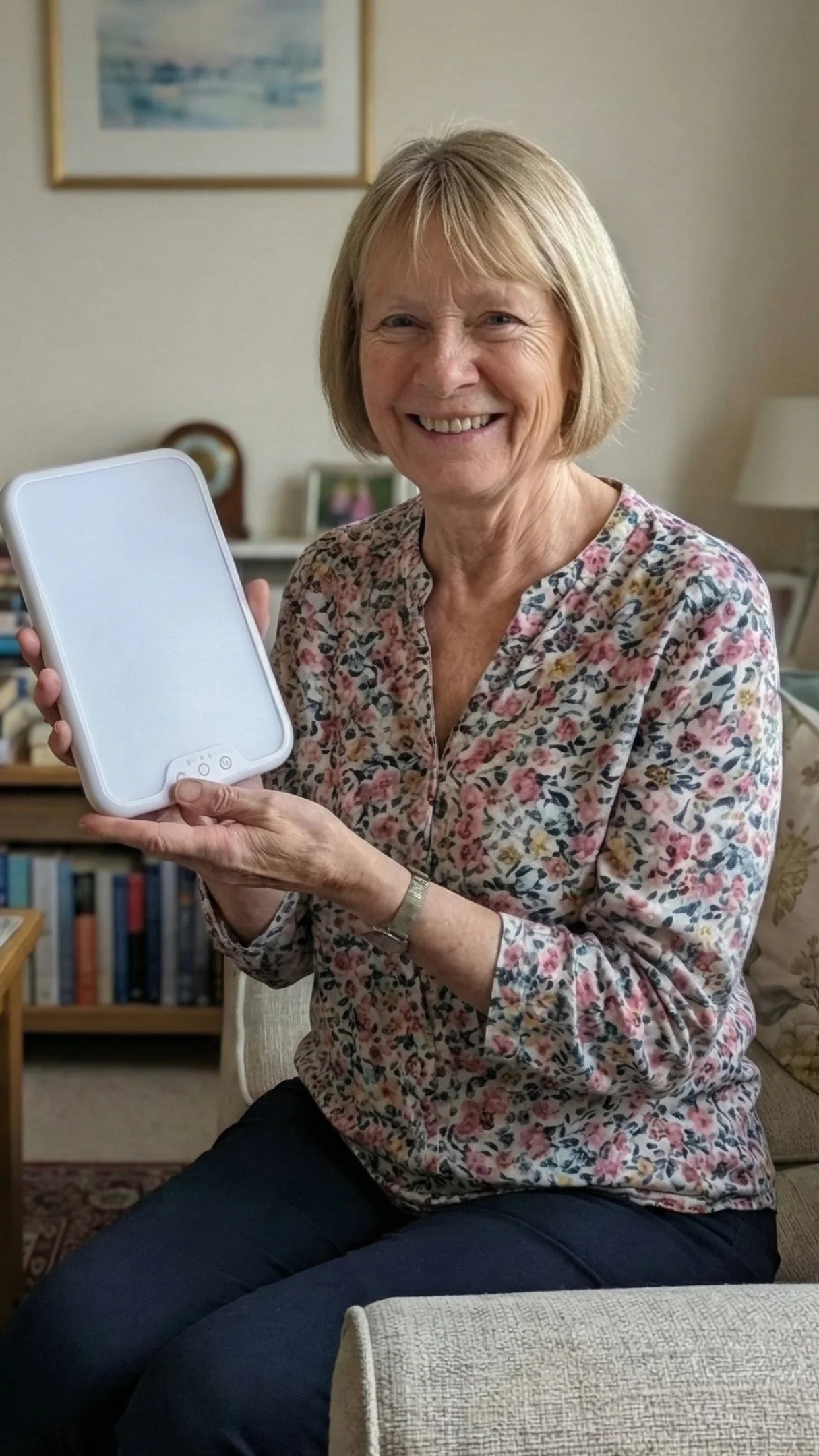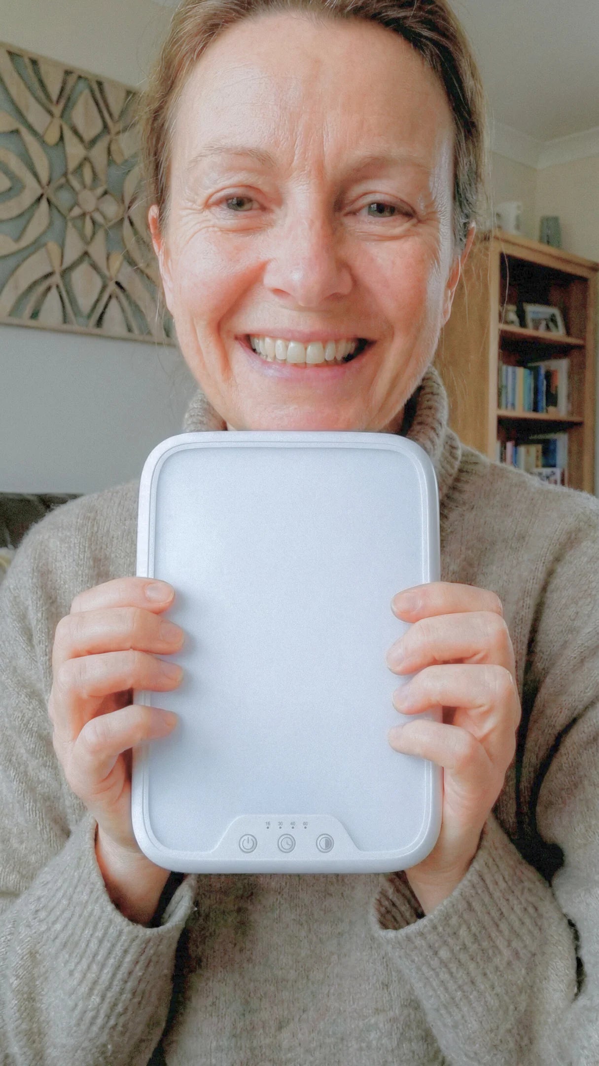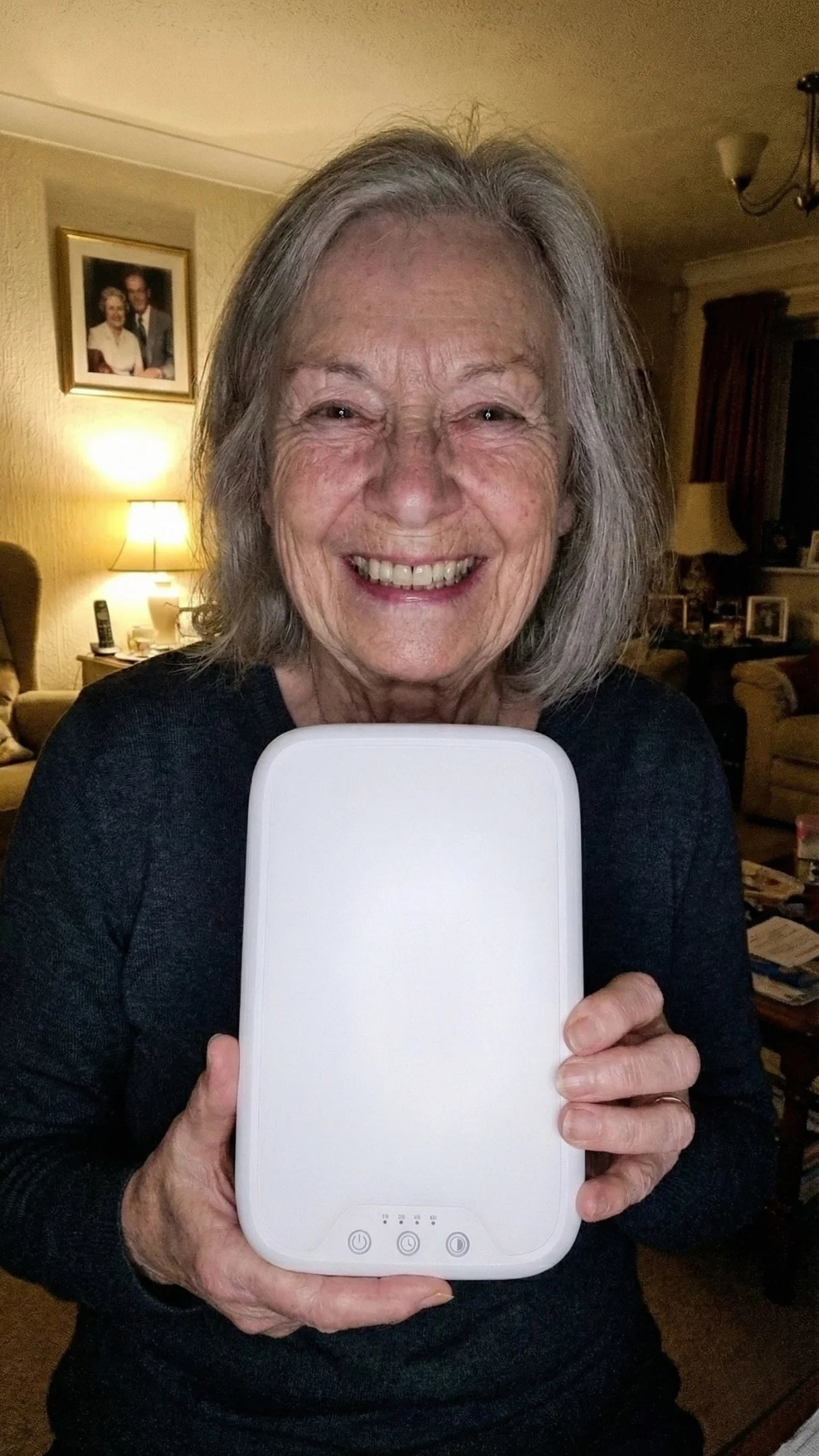 The Tzoali delivers 12,000 lux at the source, which means you get the full 10,000 lux your aging eyes actually need at a comfortable distance whilst you have your tea.